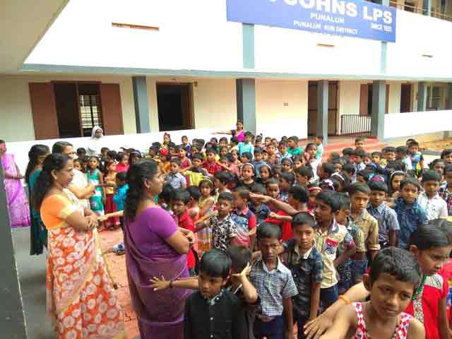 St. John's L. P. S stands on a hill top by the Punalur railway station on the bank of Kallada River, flowing beneath the historical suspension bridge at Punalur. It has been 91 years since the school was established.